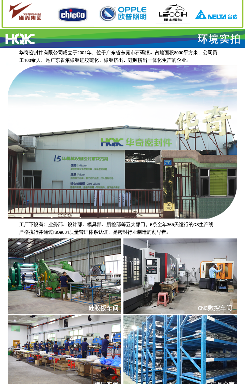 東莞市華奇密封件有限公司成立于2006年,位于廣東省東莞市石碣鎮(zhèn),占地面積10000平方米,公司員工150余人,是廣東省集橡膠硅膠硫化、橡膠擠出、硅膠擠出一體化生產(chǎn)的新型企業(yè)。 本公司主營(yíng)產(chǎn)品有:大型盾構(gòu)機(jī)密封圈,充氣密封圈,烤箱密封圈,密封條,真空吸盤,密封圈O型圈,密封圈護(hù)線圈,金屬包膠等非標(biāo)定制硅橡膠制品。 東莞市華奇密封件有限公司材料庫擁有超過數(shù)百種獨(dú)特的配方,并擁有在嚴(yán)苛環(huán)境下,如極端溫度、介質(zhì)侵蝕、超高壓力時(shí)也具有優(yōu)良的密封材料。高性能橡膠、硅膠原材料、全自動(dòng)生產(chǎn)設(shè)備及先進(jìn)的檢驗(yàn)設(shè)備,為制造高質(zhì)量的橡膠零件提供了強(qiáng)有力的保障。公司采用先進(jìn)的管理理念,引進(jìn)精良的工藝裝備和高素質(zhì)的員工隊(duì)伍,在多年的工作過程中,把嚴(yán)格的品質(zhì)落實(shí)在生產(chǎn)流程的每一個(gè)細(xì)節(jié)中,嚴(yán)格執(zhí)行行業(yè)標(biāo)準(zhǔn),規(guī)范操作,用科學(xué)嚴(yán)謹(jǐn)?shù)墓ぷ鲬B(tài)度確保華奇每一件產(chǎn)品精準(zhǔn)可靠。產(chǎn)品暢銷全國(guó)近三十多個(gè)省、市自治區(qū)及遠(yuǎn)銷國(guó)外。竭誠(chéng)與國(guó)內(nèi)外商家雙贏合作,共同發(fā)展,共創(chuàng)輝煌!