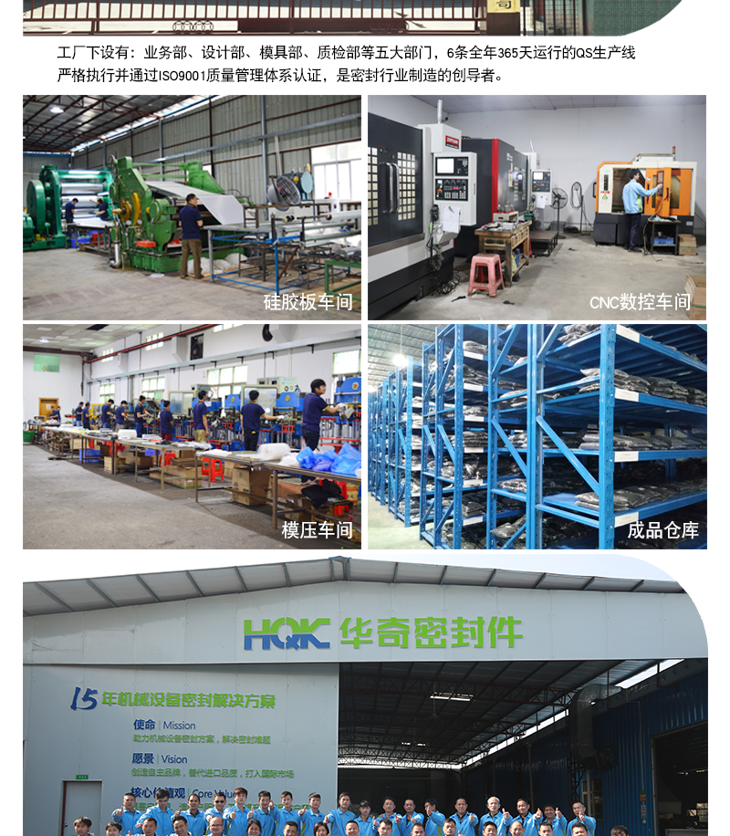 東莞市華奇密封件有限公司成立于2006年,位于廣東省東莞市石碣鎮(zhèn),占地面積10000平方米,公司員工150余人,是廣東省集橡膠硅膠硫化、橡膠擠出、硅膠擠出一體化生產(chǎn)的新型企業(yè)。 本公司主營(yíng)產(chǎn)品有:大型盾構(gòu)機(jī)密封圈,充氣密封圈,烤箱密封圈,密封條,真空吸盤,密封圈O型圈,密封圈護(hù)線圈,金屬包膠等非標(biāo)定制硅橡膠制品。 東莞市華奇密封件有限公司材料庫(kù)擁有超過(guò)數(shù)百種獨(dú)特的配方,并擁有在嚴(yán)苛環(huán)境下,如極端溫度、介質(zhì)侵蝕、超高壓力時(shí)也具有優(yōu)良的密封材料。高性能橡膠、硅膠原材料、全自動(dòng)生產(chǎn)設(shè)備及先進(jìn)的檢驗(yàn)設(shè)備,為制造高質(zhì)量的橡膠零件提供了強(qiáng)有力的保障。公司采用先進(jìn)的管理理念,引進(jìn)精良的工藝裝備和高素質(zhì)的員工隊(duì)伍,在多年的工作過(guò)程中,把嚴(yán)格的品質(zhì)落實(shí)在生產(chǎn)流程的每一個(gè)細(xì)節(jié)中,嚴(yán)格執(zhí)行行業(yè)標(biāo)準(zhǔn),規(guī)范操作,用科學(xué)嚴(yán)謹(jǐn)?shù)墓ぷ鲬B(tài)度確保華奇每一件產(chǎn)品精準(zhǔn)可靠。產(chǎn)品暢銷全國(guó)近三十多個(gè)省、市自治區(qū)及遠(yuǎn)銷國(guó)外。竭誠(chéng)與國(guó)內(nèi)外商家雙贏合作,共同發(fā)展,共創(chuàng)輝煌!